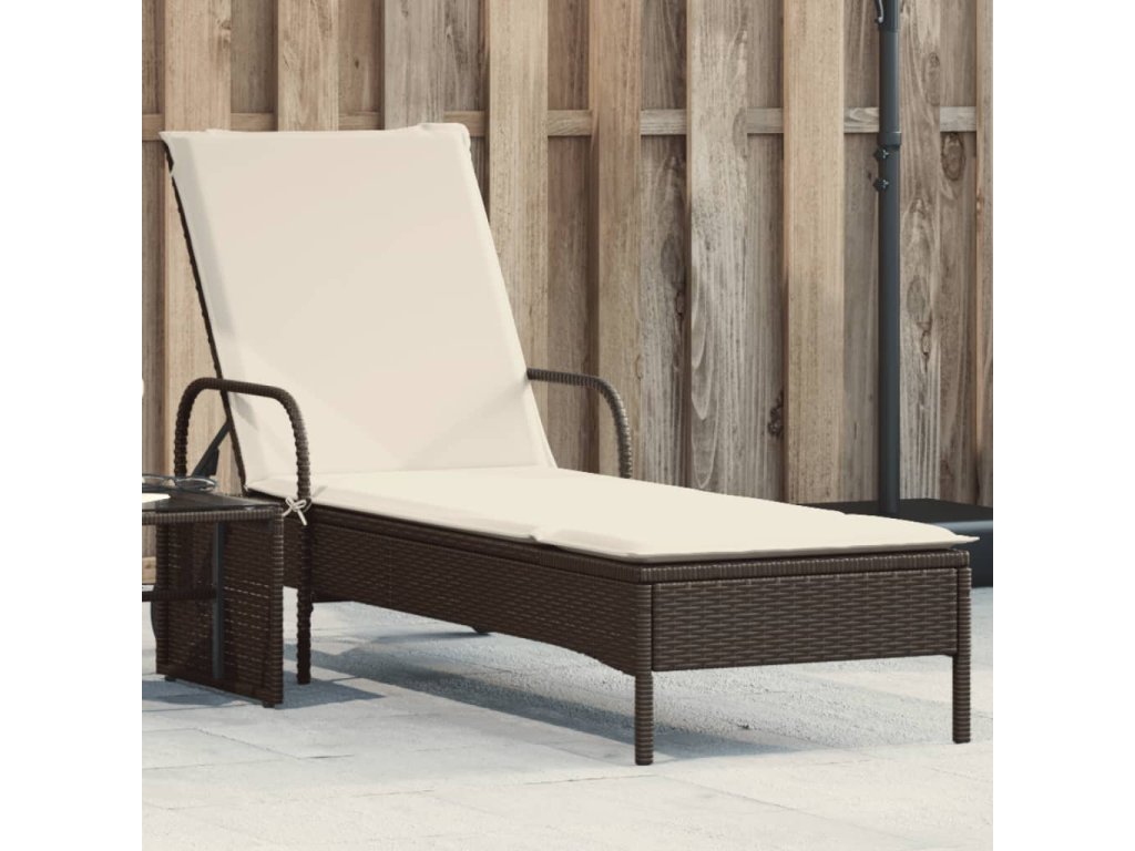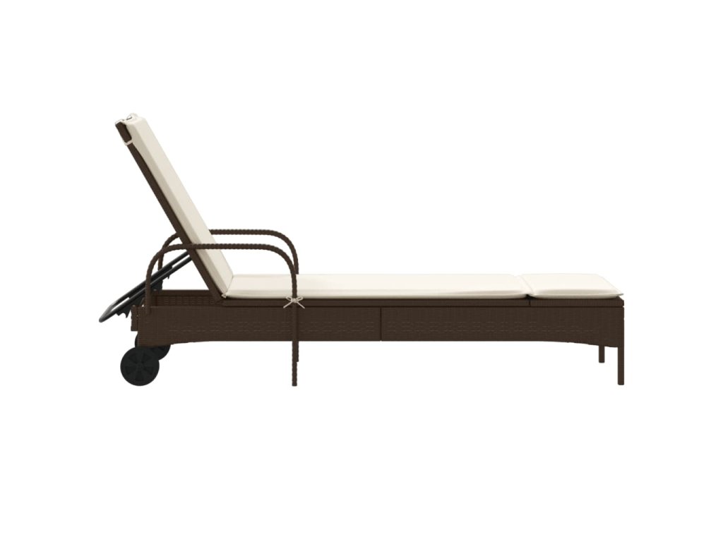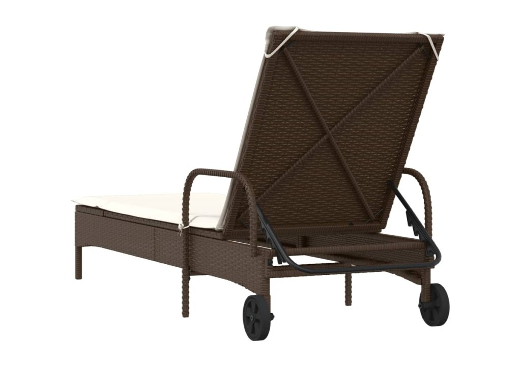 vidaXL Záhradné ležadlo s kolieskami a podložkou polyratan hnedé
