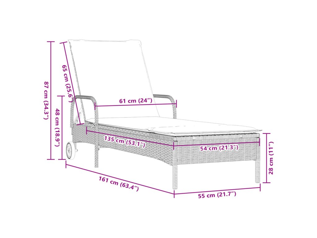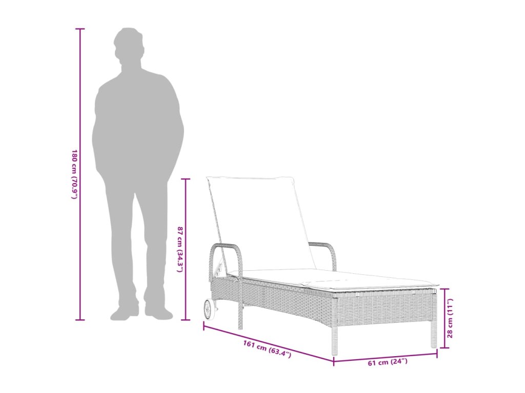- Rozmery v polohe na sedenie: 61 x 161 x 87 cm (Š x H x V)
