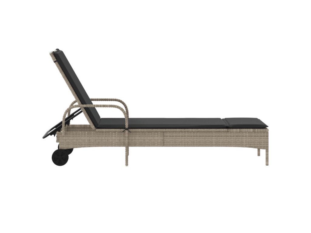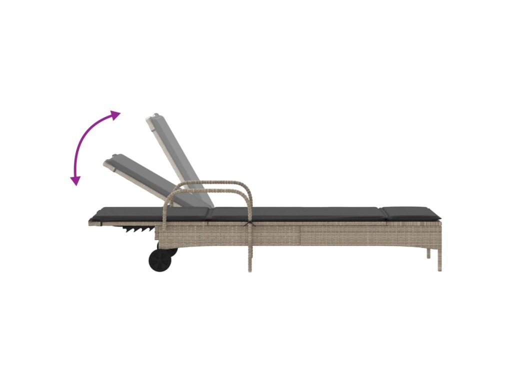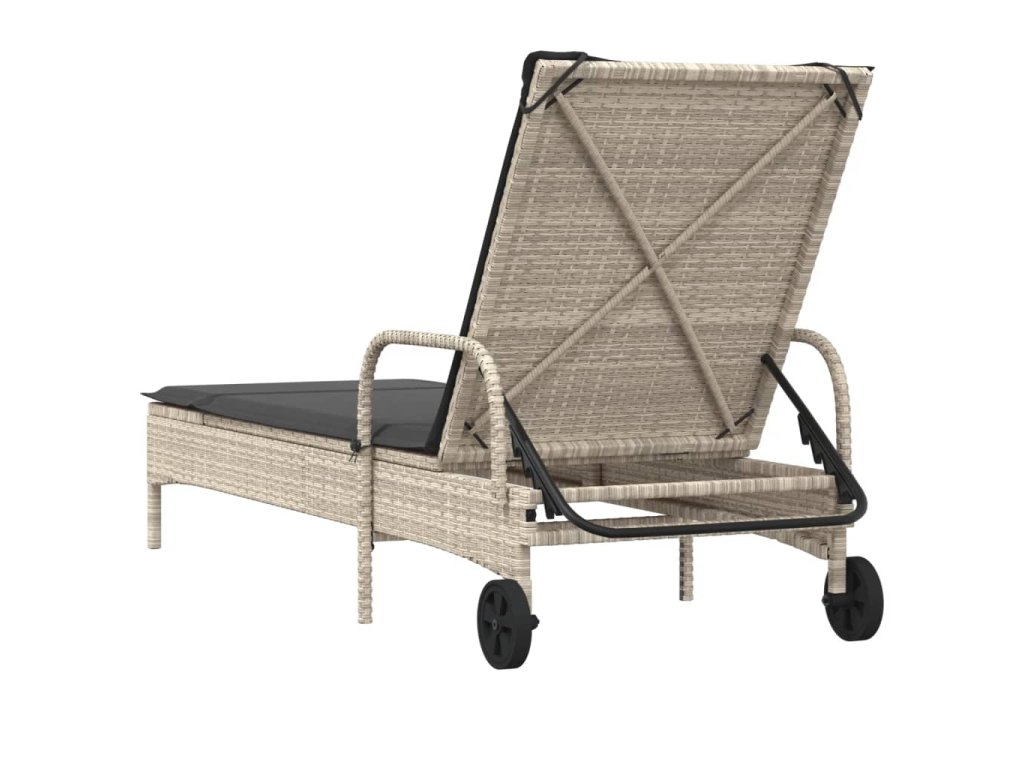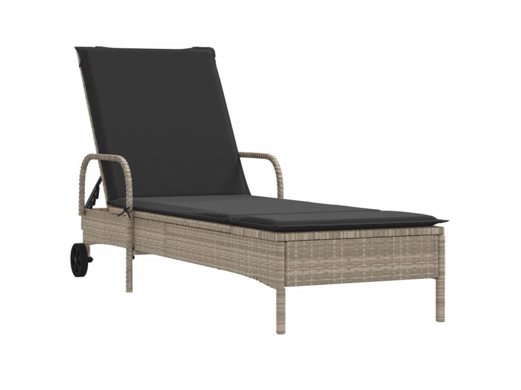 vidaXL Záhradné ležadlo s kolieskami a podložkou svetlosivé polyratan