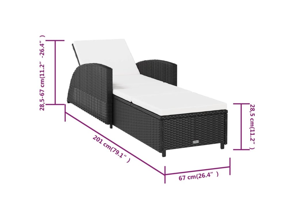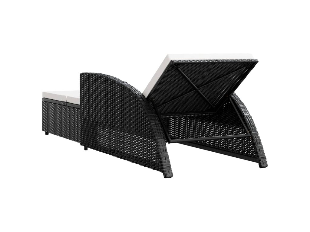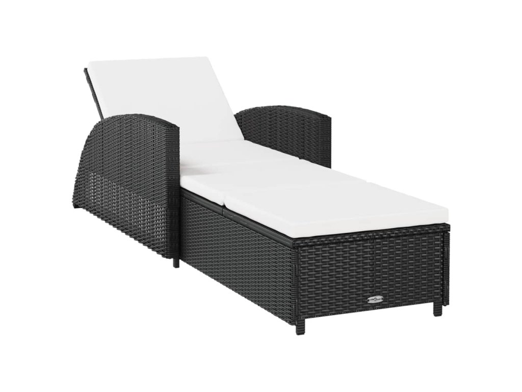 vidaXL Záhradné ležadlo s krémovo-bielou podložkou polyratanové čierne