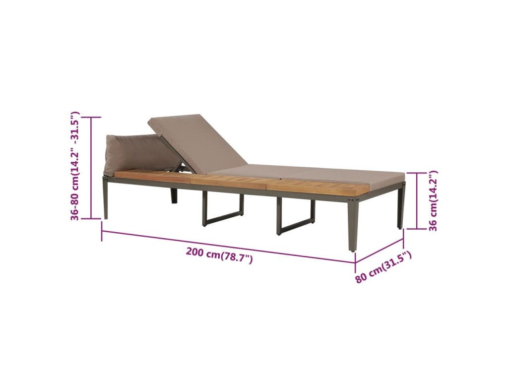 Záhradné ležadlo je vyrobené z akáciového masívu, tropického tvrdého dreva, ktoré je odolné voči poveternostným vplyvom, veľmi trvácne a vhodné na každodenné používanie v exteriéri. Oceľové nohy sú pevné a stabilné. Ležadlo sa dodáva spolu s pohodlnými, nahusto polstrovanými podložkami pre maximálne pohodlie. Polyesterový poťah si nevyžaduje náročnú údržbu a dá sa jednoducho zvliecť a oprať. Záhradné ležadlo je potrebné zmontovať.