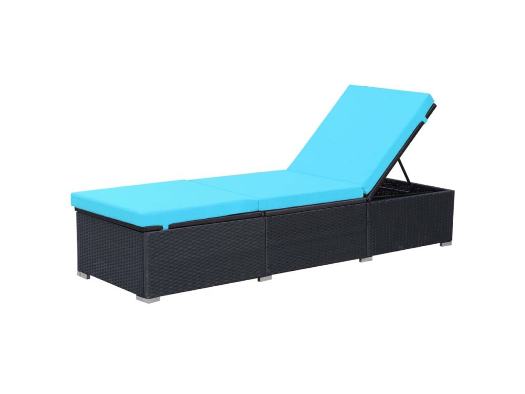 vidaXL Záhradné ležadlo s podložkou, polyratan, čierne