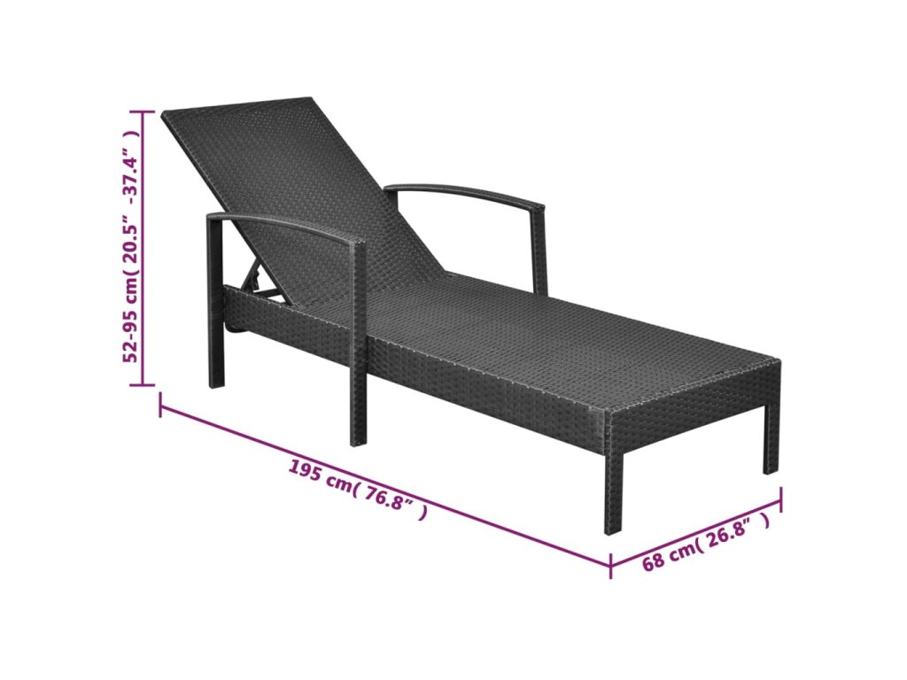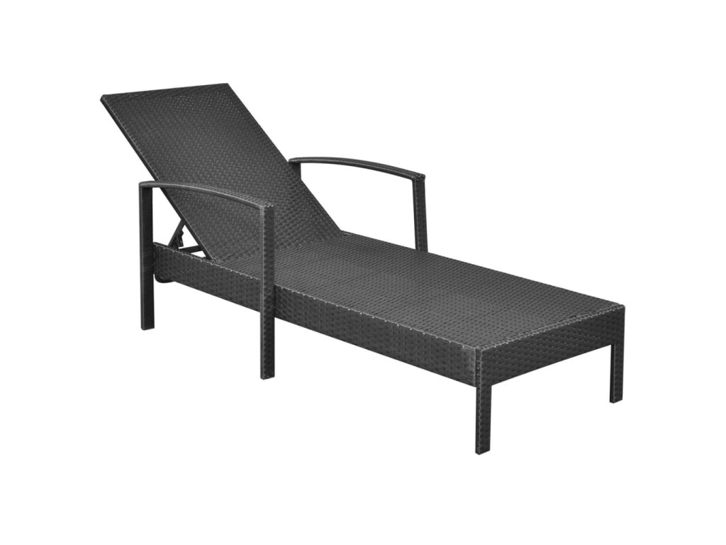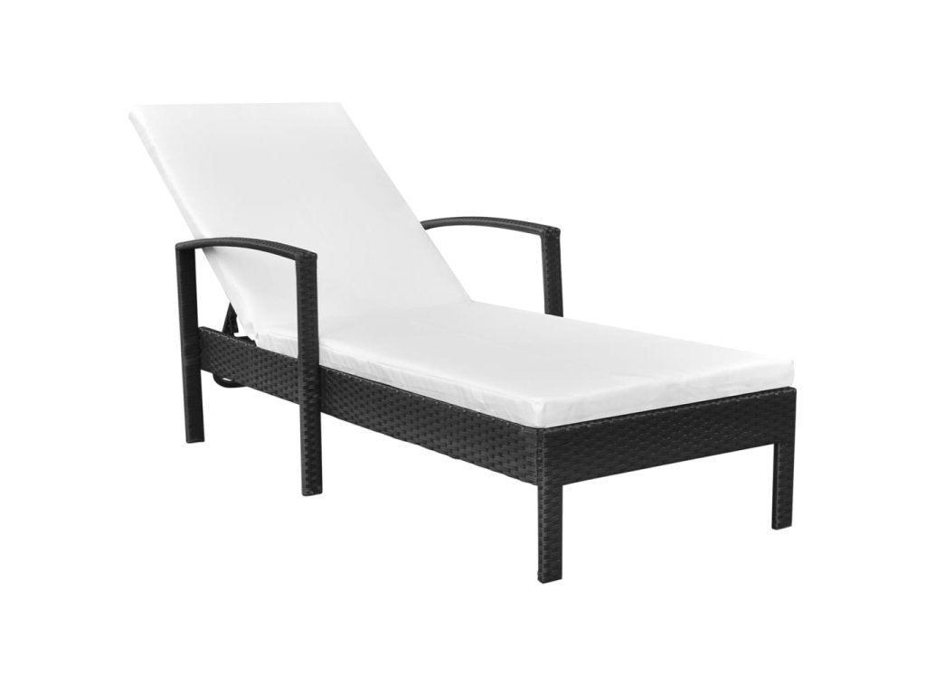 vidaXL Záhradné ležadlo s podložkou, polyratan, čierne