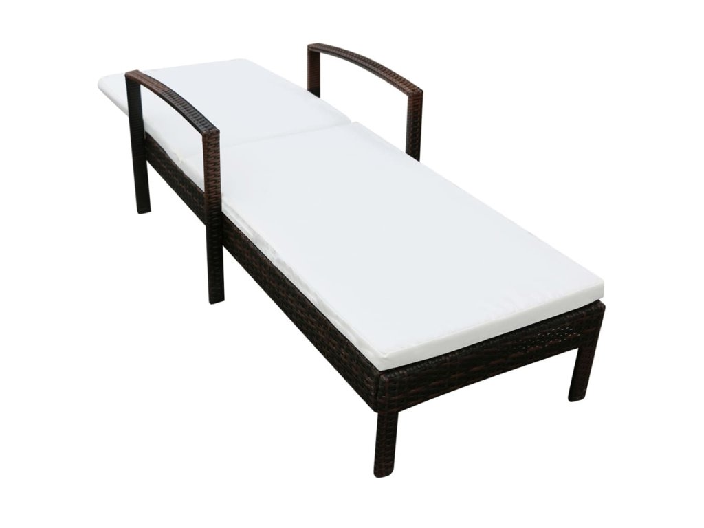 vidaXL Záhradné ležadlo s podložkou, polyratan, hnedé