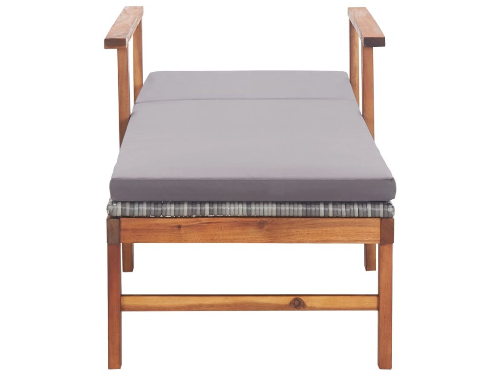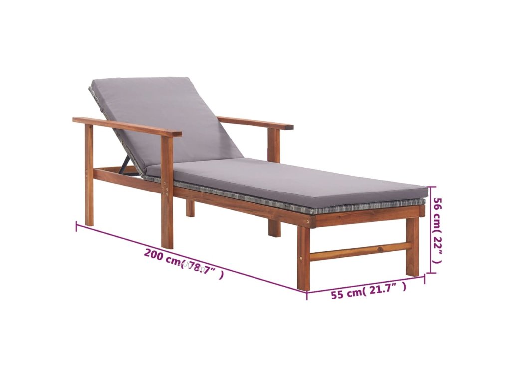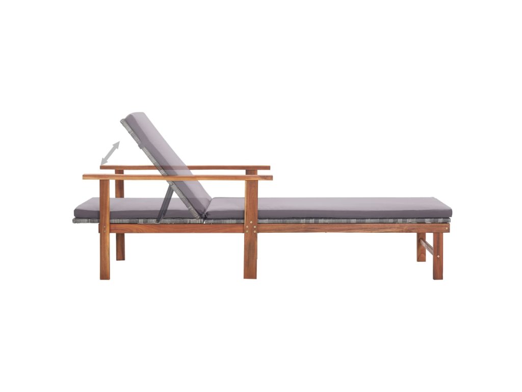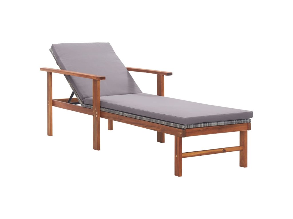 vidaXL Záhradné ležadlo s podložkou, polyratan a akáciový masív, sivé