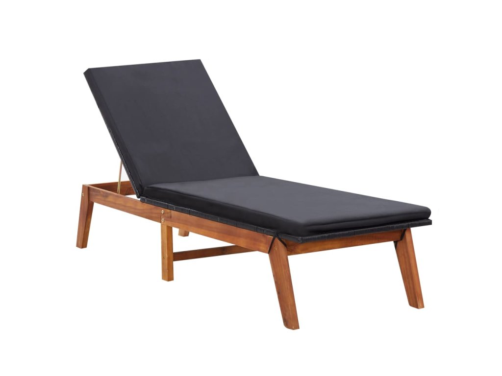 vidaXL Záhradné ležadlo s podložkou, polyratan a akáciový masív