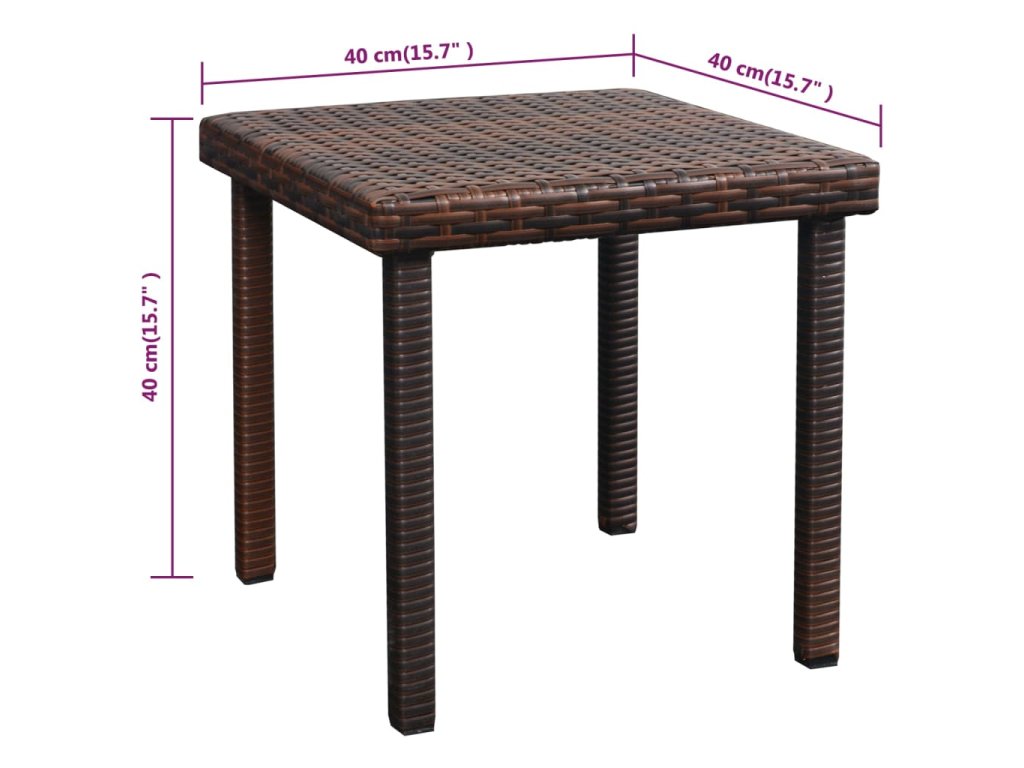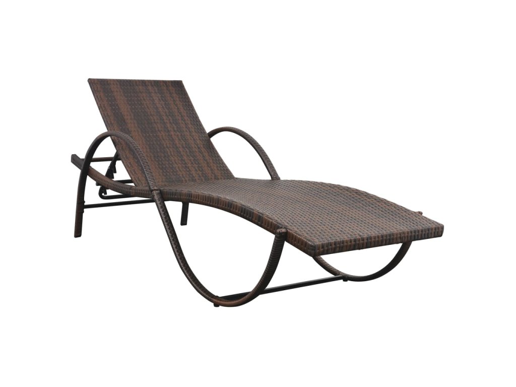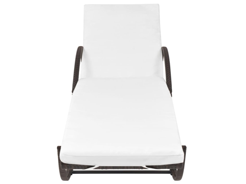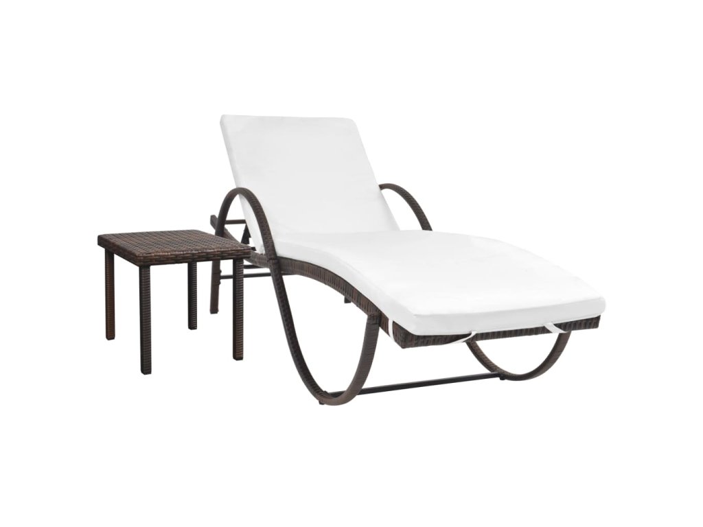 vidaXL Záhradné ležadlo s podložkou a stolíkom, polyratan, hnedé