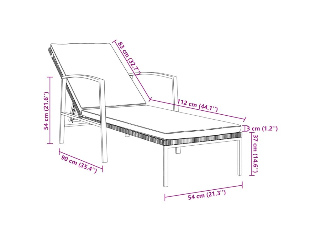 vidaXL Záhradné ležadlo s podložkou polyratan sivé
