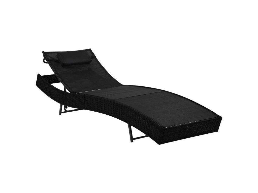 vidaXL Záhradné ležadlo s vankúšom, polyratan, čierne