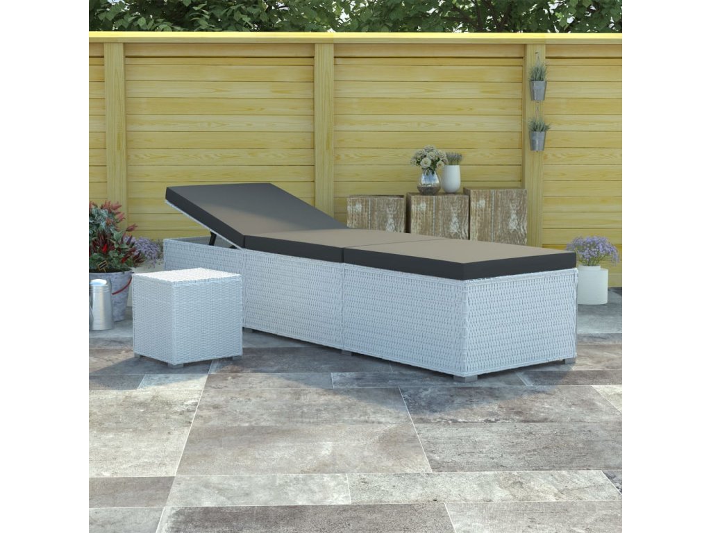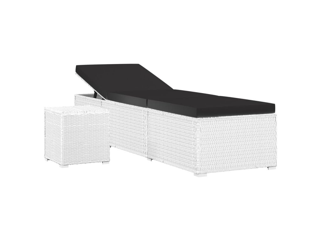 vidaXL Záhradné ležadlo s vankúšom a čajovým stolíkom biele polyratanové