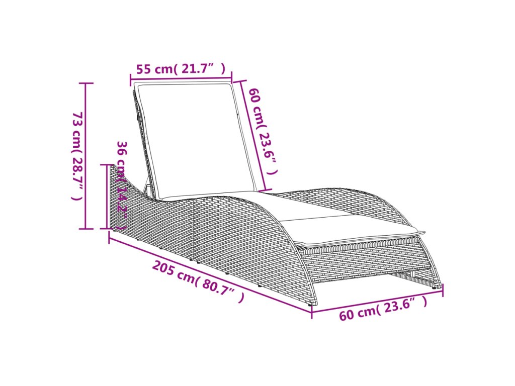 vidaXL Záhradné ležadlo s vankúšom hnedé 60x205x73 cm polyratan