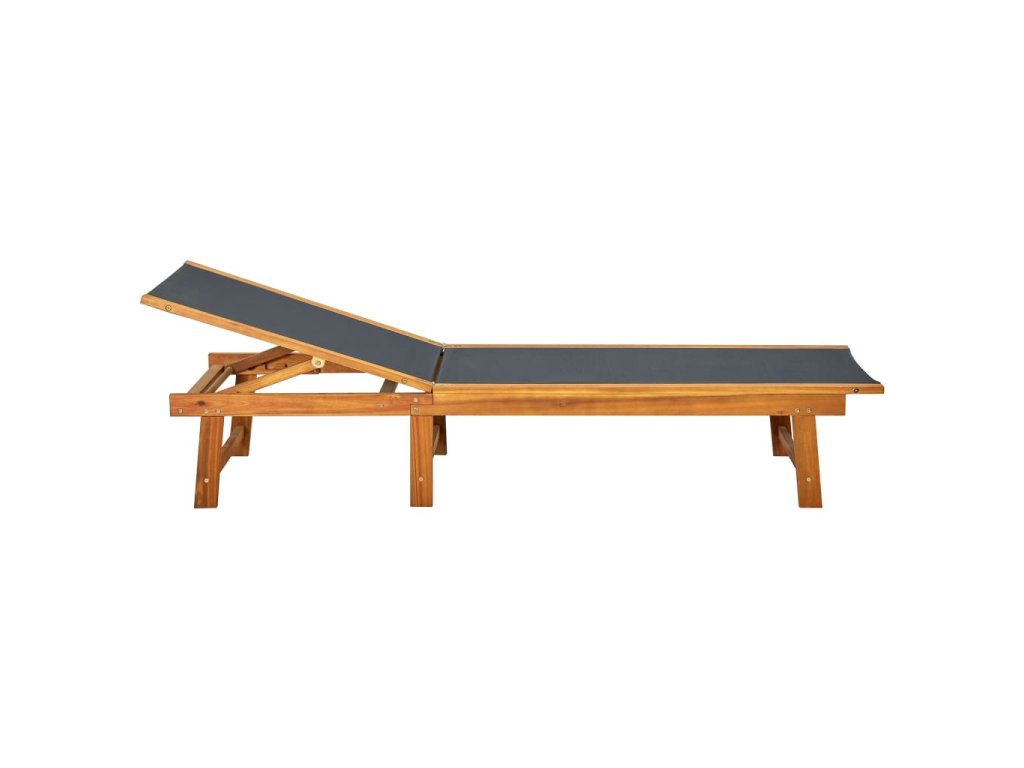Ležadlo je vyrobené z veľmi kvalitného akáciového dreva so svetlým olejovým náterom. Ide o drevo tropického listnatého stromu, ktoré je odolné voči poveternostným vplyvom a skutočne trvácne. Pevná textilénová látka je vodovzdorná a ľahko sa čistí. Operadlo záhradného lehátka sa dá polohovať, aby sa vám na ňom ležalo čo najpohodlnejšie. Na robustný štvorcový stolík, ktorý je tiež vyrobený z akáciového dreva, si môžete položiť nápoje, telefón, knihu alebo iné drobné predmety, ktoré chcete mať vždy poruke.