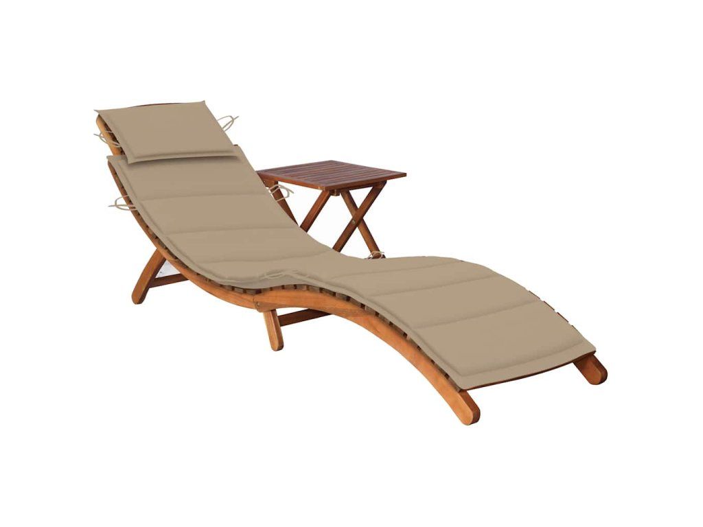 vidaXL Záhradné ležadlo so stolíkom a podložkou akáciový masív
