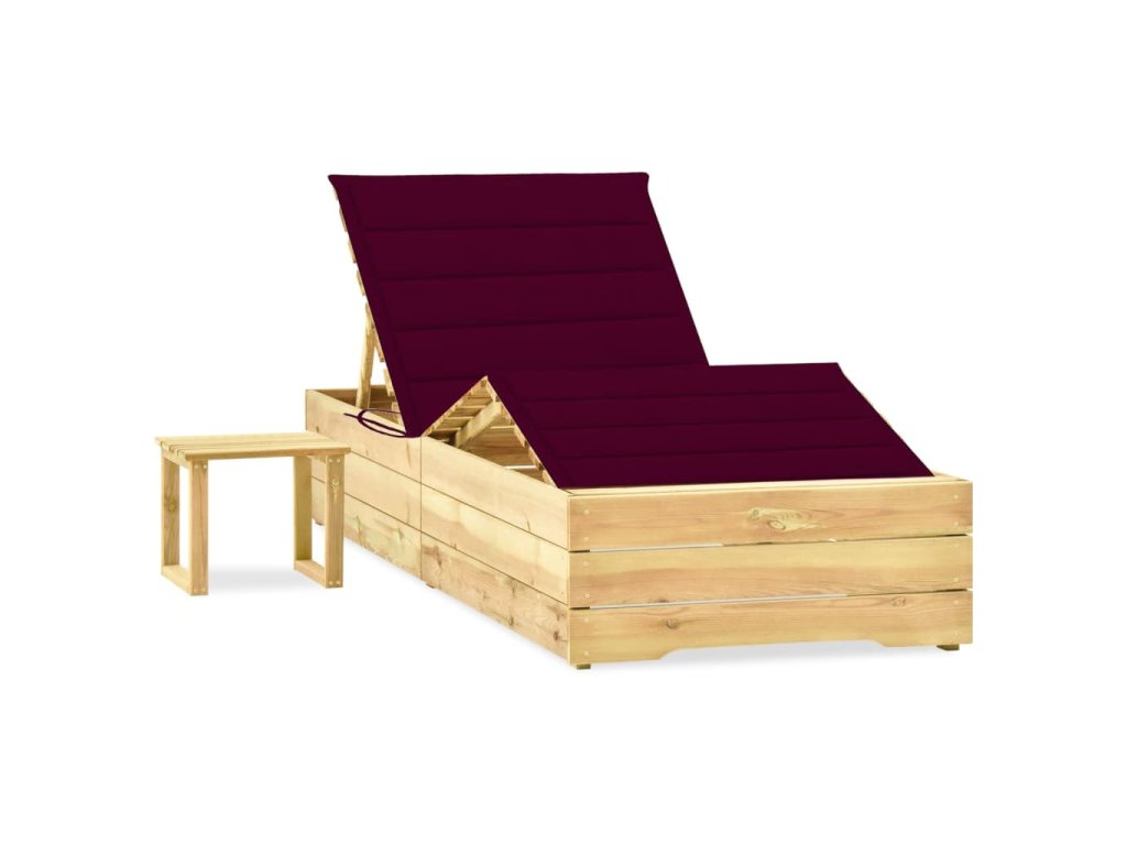 vidaXL Záhradné ležadlo so stolom a podložkou, impregnovaná borovica