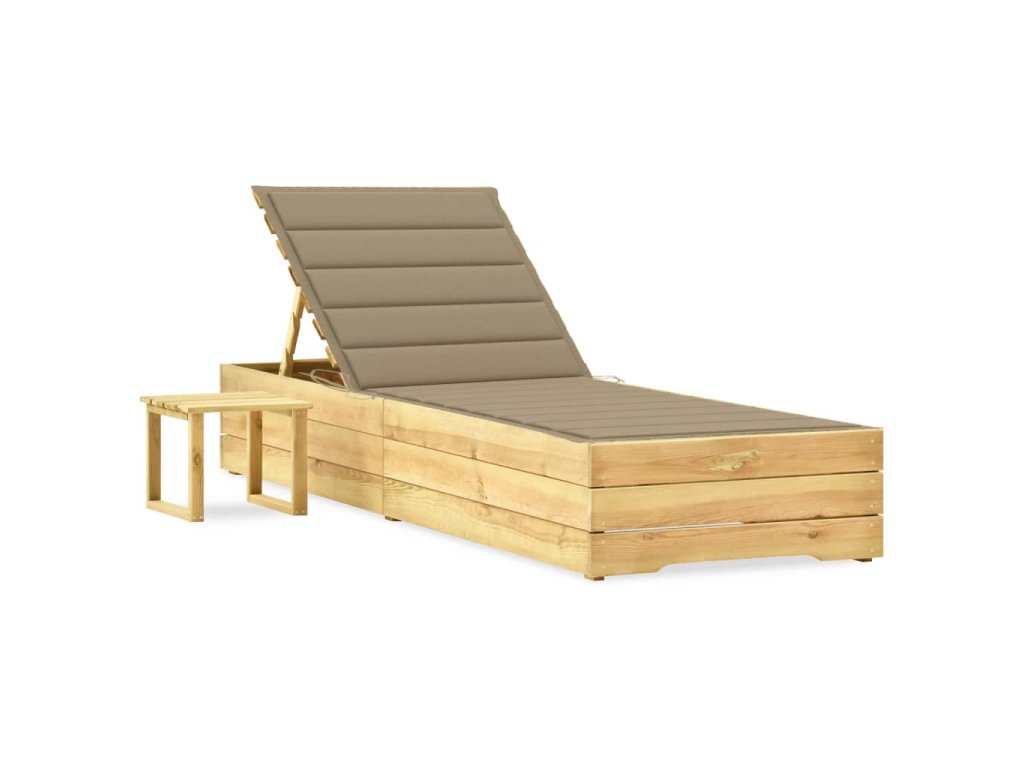 vidaXL Záhradné ležadlo so stolom a podložkou, impregnovaná borovica