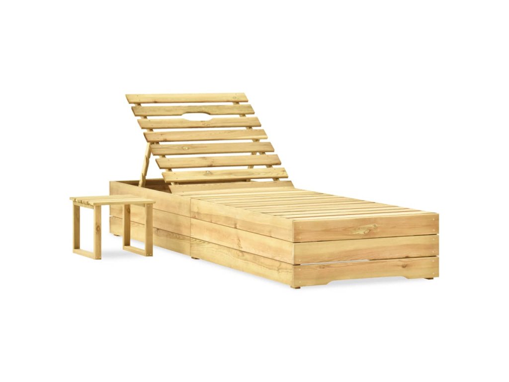 vidaXL Záhradné ležadlo so stolom a podložkou, impregnovaná borovica