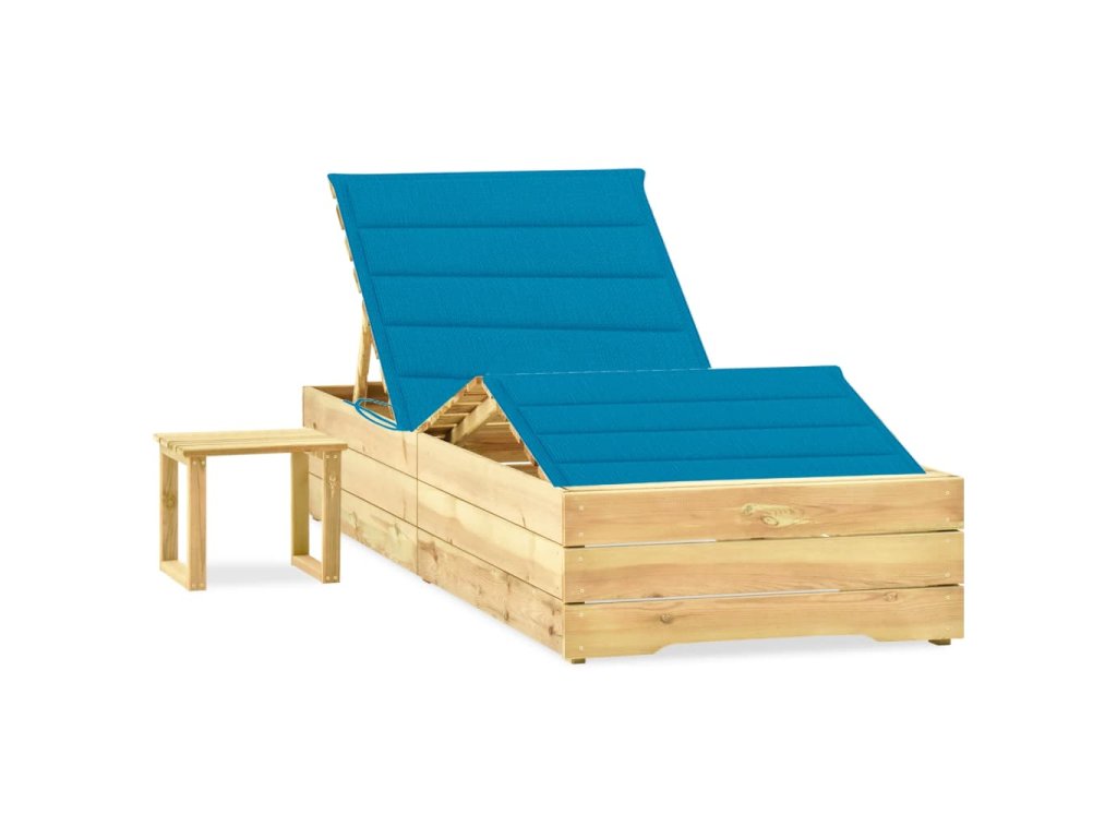 vidaXL Záhradné ležadlo so stolom a podložkou, impregnovaná borovica