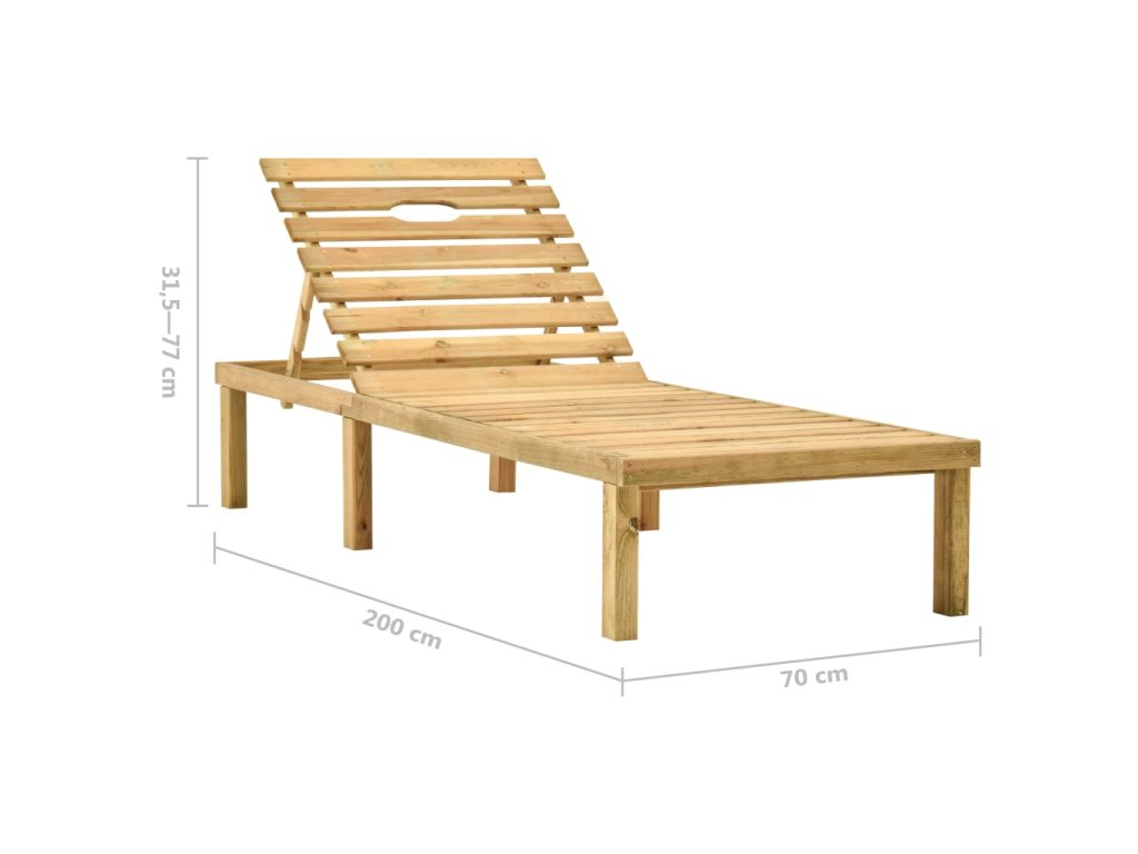 - Rozmery lehátka (po rozložení): 200 x 70 x (31,5 - 77) cm (D x Š x V)