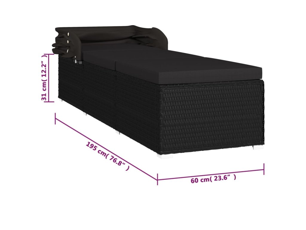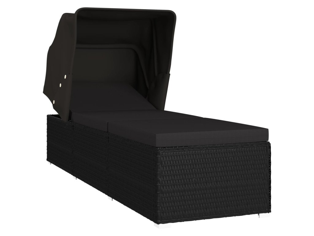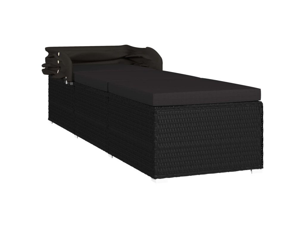 vidaXL Záhradné ležadlo so strieškou a podložkou polyratanové čierne