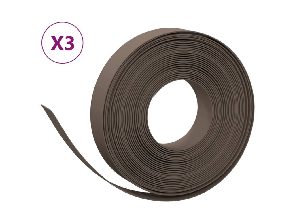 vidaXL Záhradné obruby 3 ks hnedé 10 m 10 cm polyetylén
