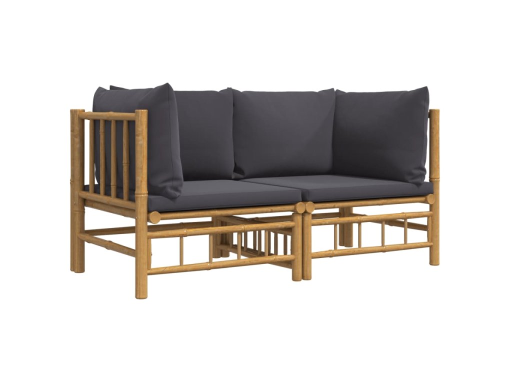 vidaXL Záhradné rohové pohovky s tmavosivými vankúšmi 2 ks bambus
