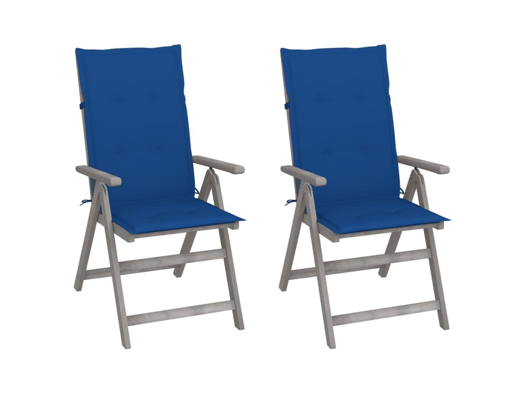 Stoličky sú vyrobené z masívneho akáciového dreva so sivou povrchovou úpravou. Je to tvrdé drevo s bohatou štruktúrou. Tieto nádherne navrhnuté záhradné stoličky sú stabilné, odolné a pútavé. Operadlo sa dá nastaviť do 5 pozícií, takže si môžete kedykoľvek nastaviť tú najpohodlnejšiu polohu podľa svojich preferencií. Navyše, pribalené vankúše poskytujú extra pohodlie pri odpočinku. Sú vyrobené zo 100% polyesteru, ktorý je upravený tak, aby bol vodeodolný. Každý vankúš má elastický pás a dve sady šnúrok, pomocou ktorých ho pevne pripevníte k stoličke.