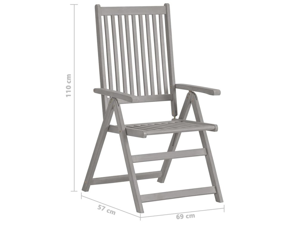 Stoličky sú vyrobené z masívneho akáciového dreva so sivou povrchovou úpravou. Je to tvrdé drevo s bohatou štruktúrou. Tieto nádherne navrhnuté záhradné stoličky sú stabilné, odolné a pútavé. Operadlo sa dá nastaviť do 5 pozícií, takže si môžete kedykoľvek nastaviť tú najpohodlnejšiu polohu podľa svojich preferencií. Navyše, pribalené vankúše poskytujú ďalšie pohodlie pri leňošení alebo stolovaní. Každý vankúš má gumičku a dve sady šnúrok, pomocou ktorých ho pevne pripevníte k stoličke. Tieto stoličky sú ideálne na stolovanie s rodinou alebo len tak na vychutnanie si pekného počasia na záhrade.