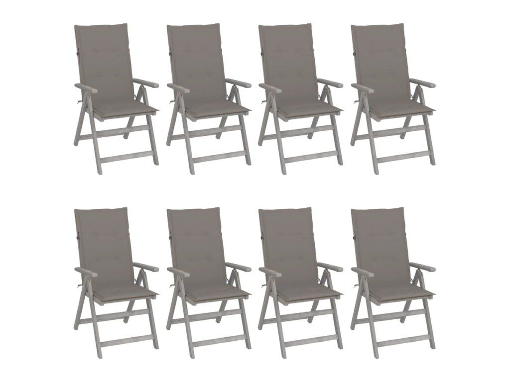 vidaXL Záhradné sklápacie stoličky+podložky 8 ks, sivé, akáciové drevo