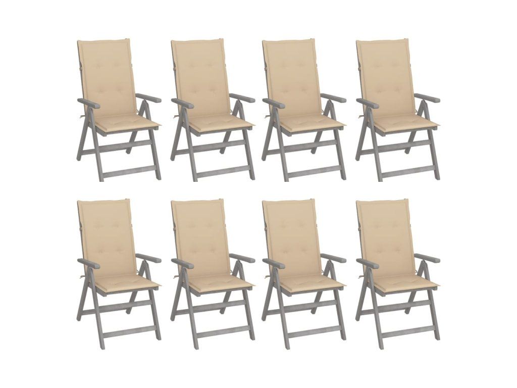 vidaXL Záhradné sklápacie stoličky+podložky 8 ks, sivé, akáciové drevo