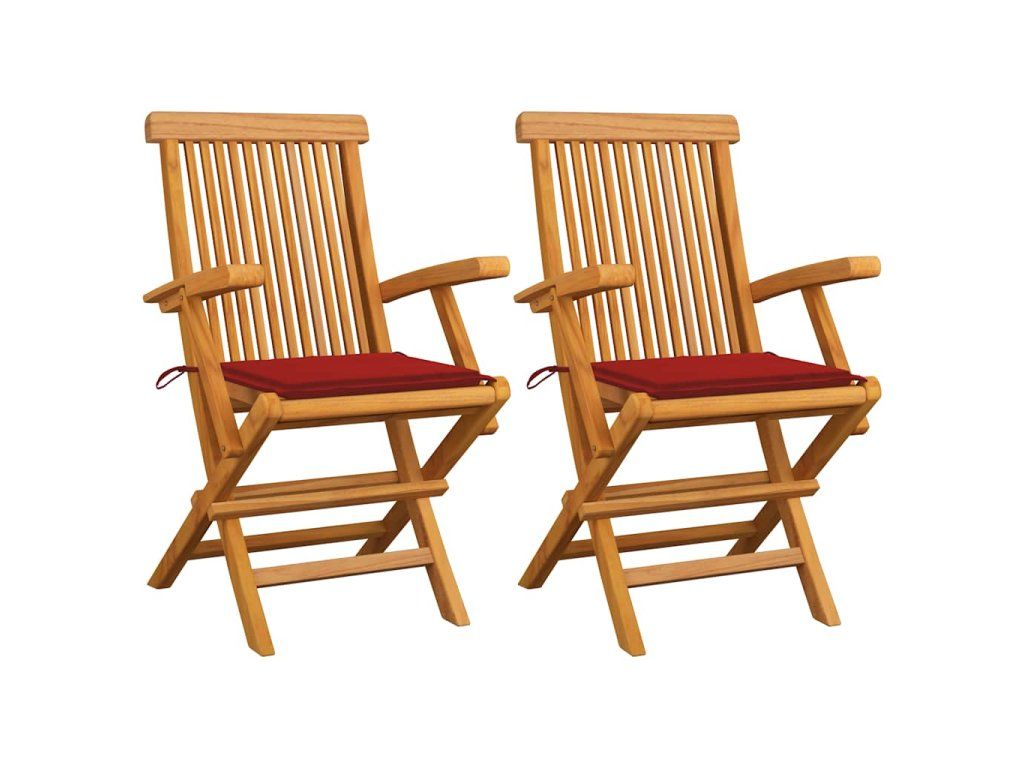 vidaXL Záhradné stoličky, červené podložky 2 ks, tíkový masív