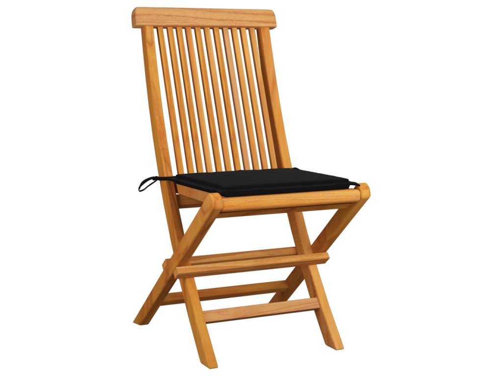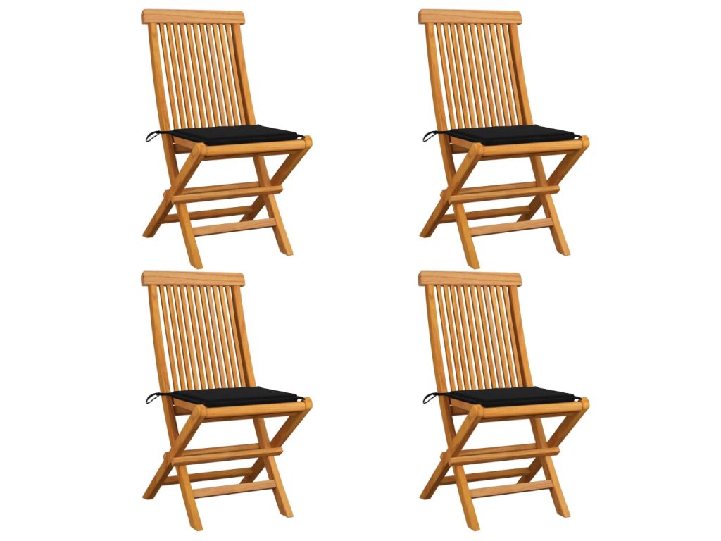 vidaXL Záhradné stoličky, čierne podložky 4 ks, tíkový masív