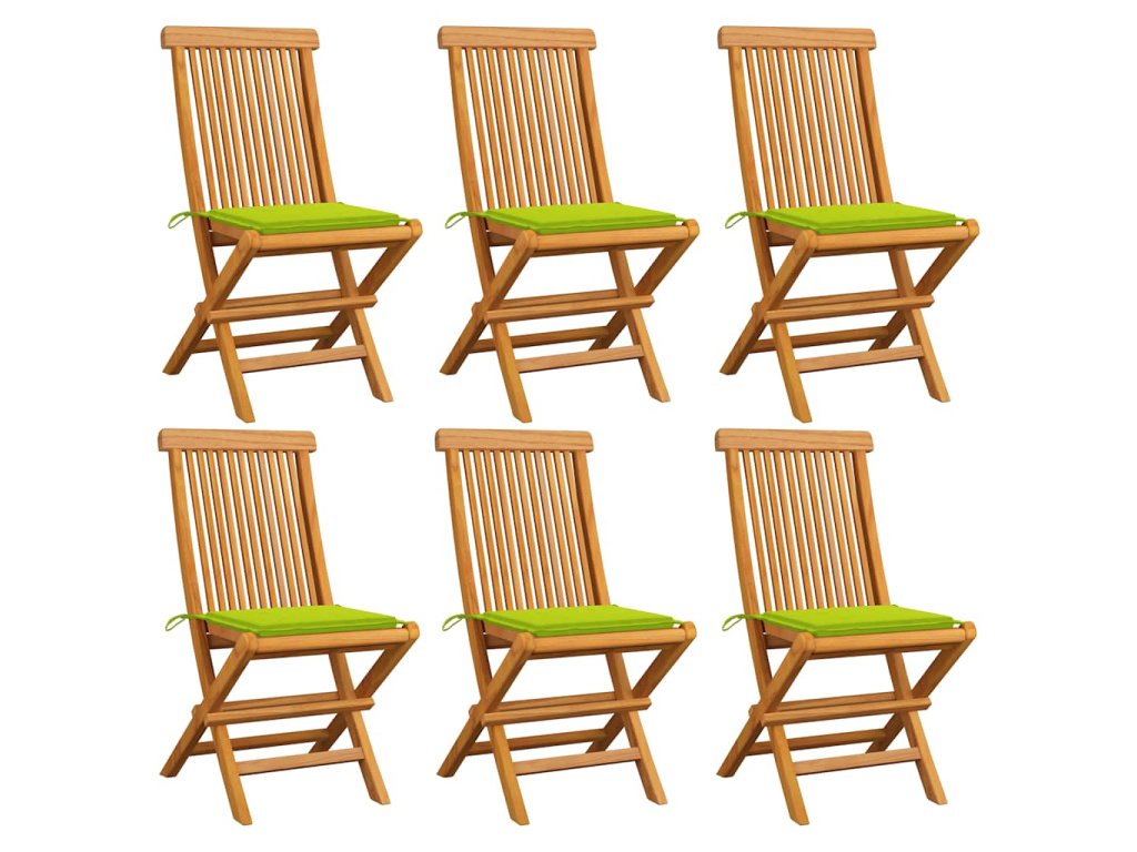 vidaXL Záhradné stoličky, jasnozelené podložky 6 ks, tíkový masív