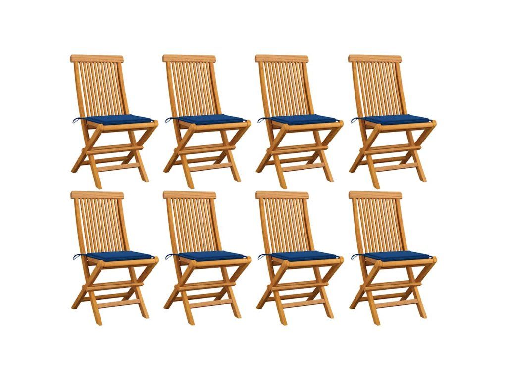 vidaXL Záhradné stoličky, kráľovsky modré podložky 8 ks, tíkový masív