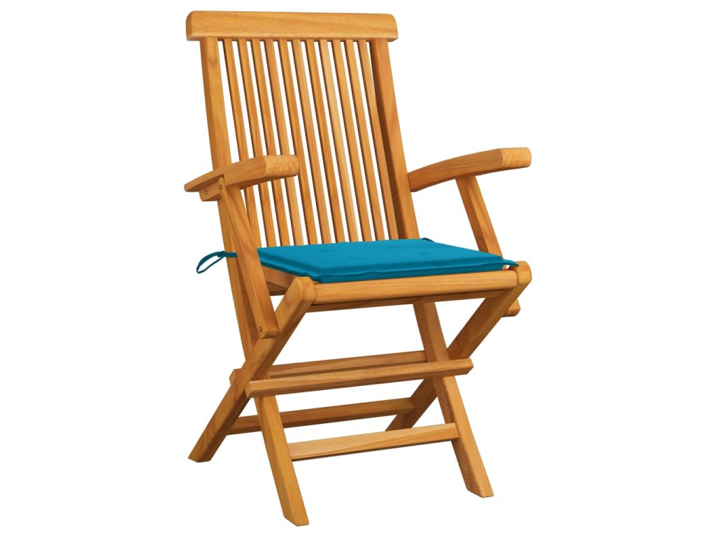 vidaXL Záhradné stoličky, modré podložky 3 ks, tíkový masív