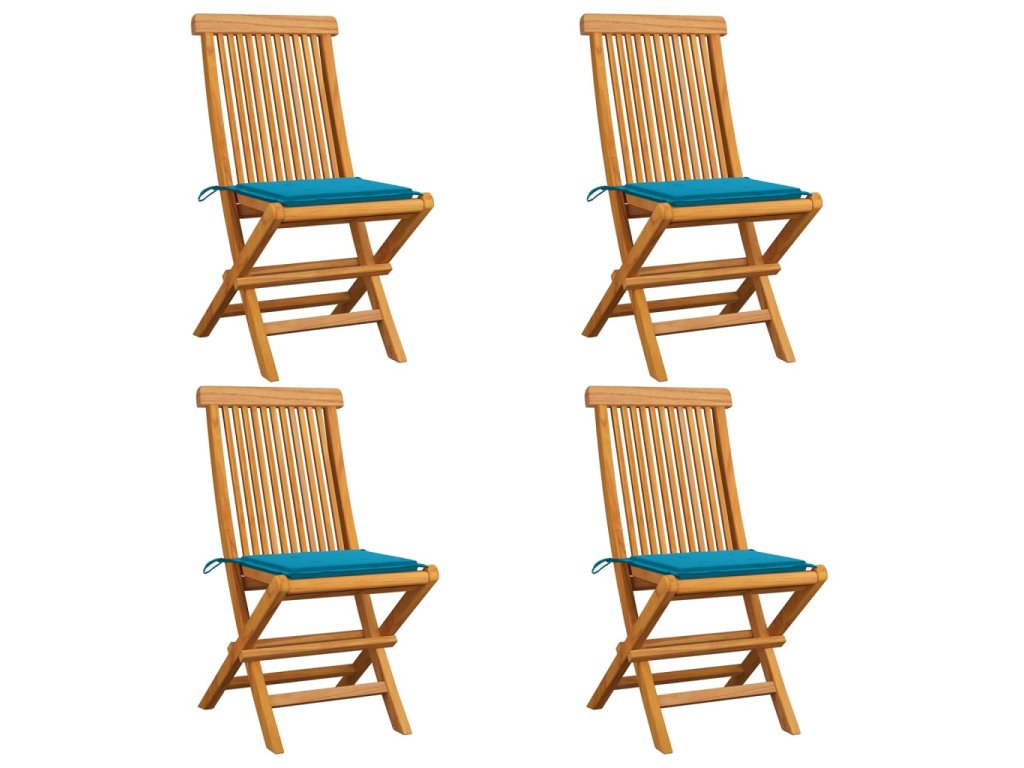 vidaXL Záhradné stoličky, modré podložky 4 ks, tíkový masív