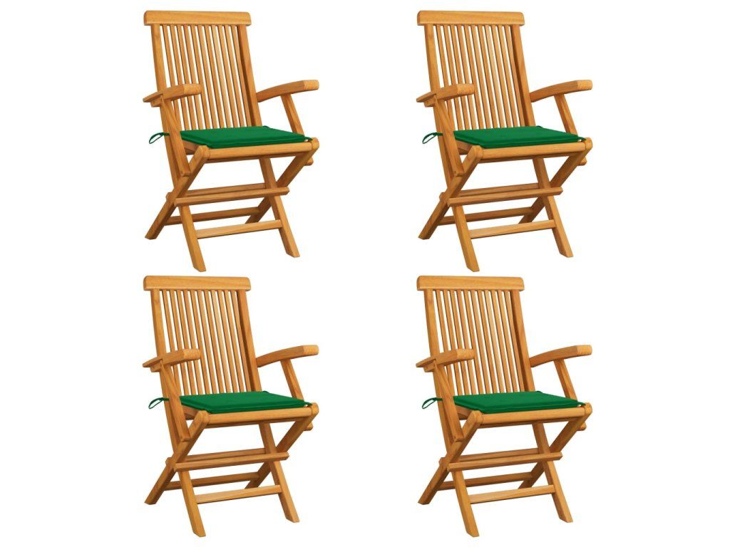 vidaXL Záhradné stoličky, zelené podložky 4 ks, tíkový masív
