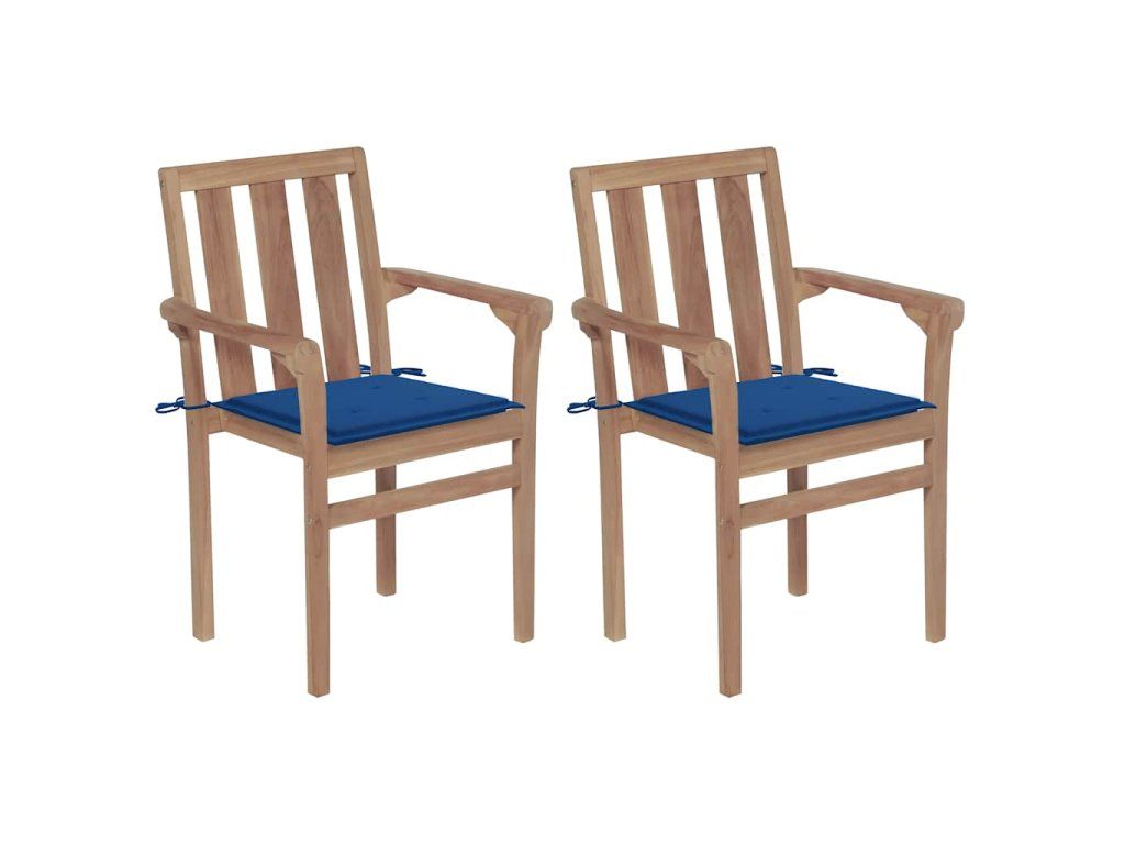 vidaXL Záhradné stoličky 2 ks, kráľovsky modré podložky, tíkový masív
