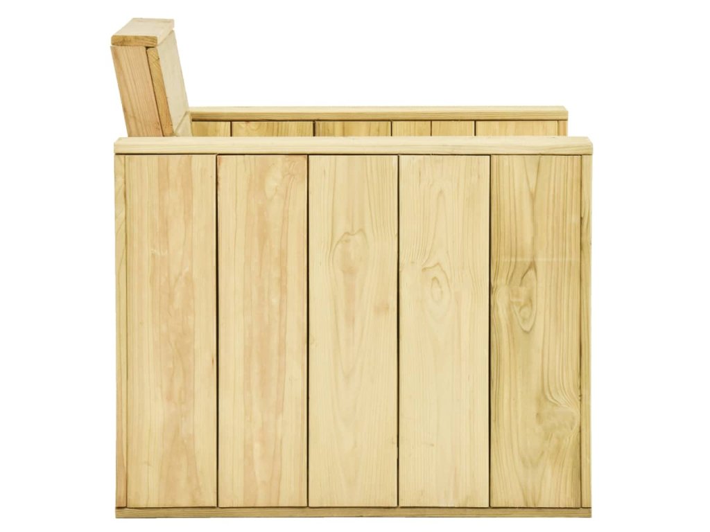 Vonkajšia stolička je vyrobená z borovicového dreva, a tak vyniká svojou trvácnosťou a odolnosťou voči poveternostným vplyvom. Kreslo môžete umiestniť do záhrady či na terasu, aby ste si na ňom mohli vychutnávať príjemný odpočinok pri knihe a šálke kávy.
