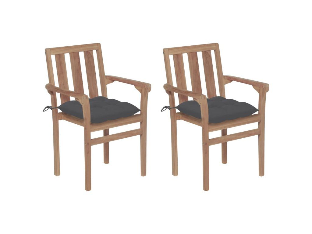 vidaXL Záhradné stoličky 2 ks antracitové podložky teakový masív