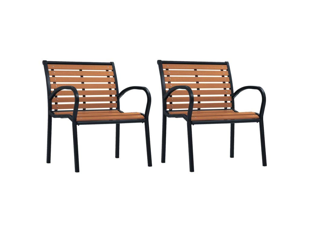 vidaXL Záhradné stoličky 2 ks čierne a hnedé oceľové a WPC
