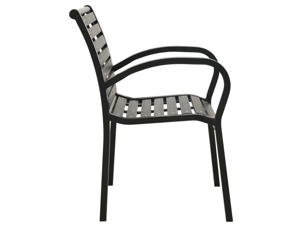 Táto terasová stolička kombinuje oceľový rám a WPC, a preto je odolná voči vplyvom počasia, trvácna a vhodná na vonkajšie použitie. Vďaka nenápadnému a priemyselnému dizajnu dodá vašej záhrade alebo terase štýlový nádych. Záhradná stolička sa ľahko čistí a udržiava. Okrem toho sa stoličky dajú stohovať, aby sa ušetrilo miesto, keď sa práve nepoužívajú.