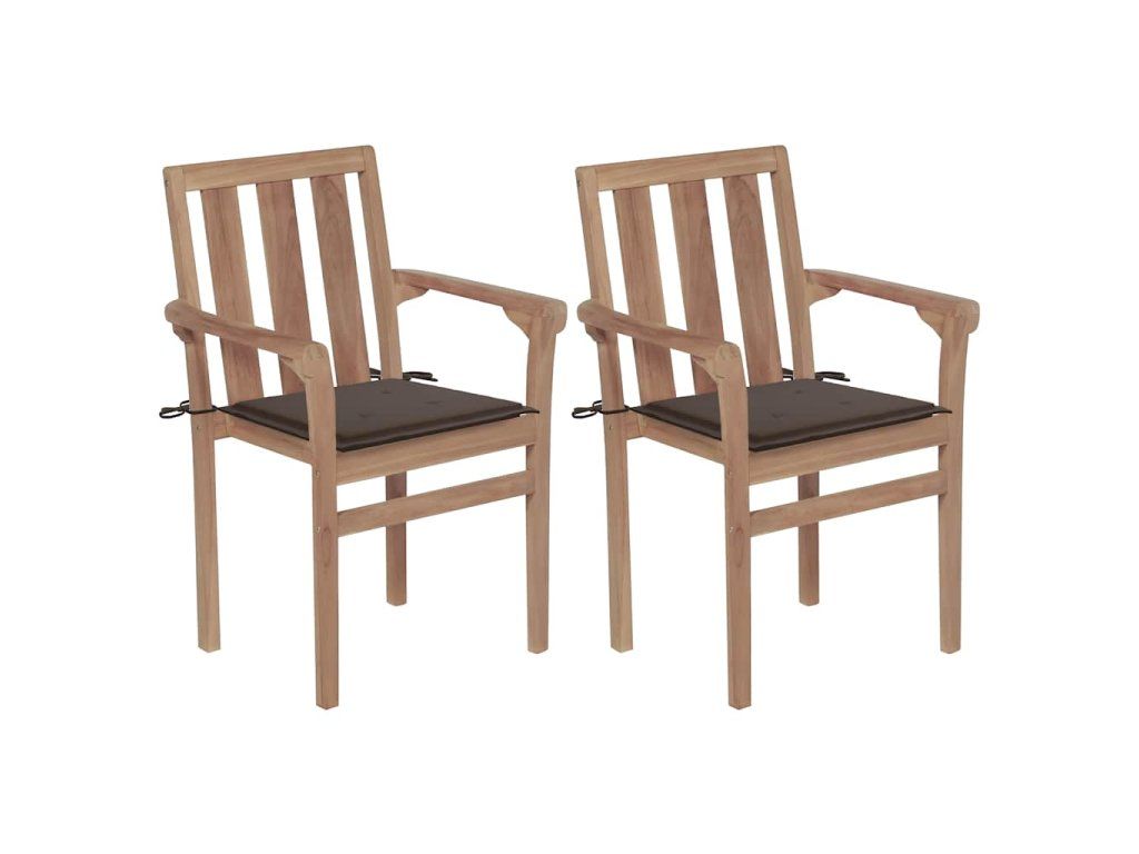 vidaXL Záhradné stoličky 2 ks hnedosivé podložky teakový masív