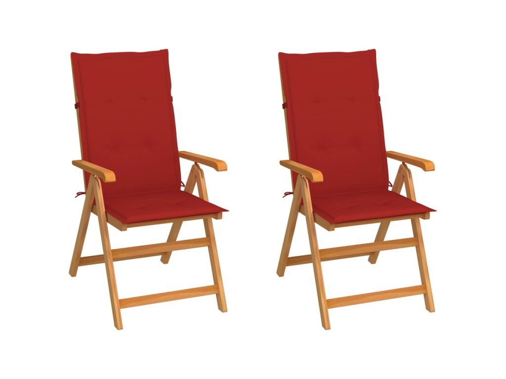 vidaXL Záhradné stoličky 2 ks s červenými podložkami tíkový masív