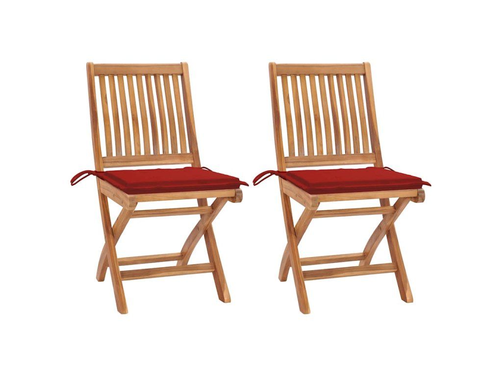 vidaXL Záhradné stoličky 2 ks s červenými podložkami tíkový masív