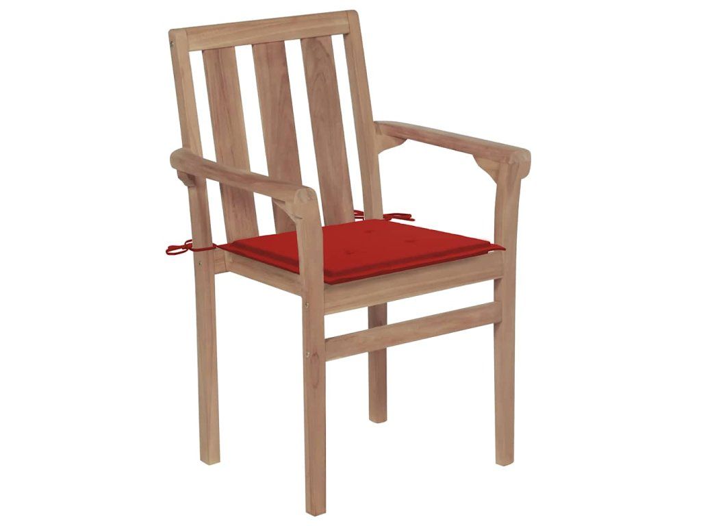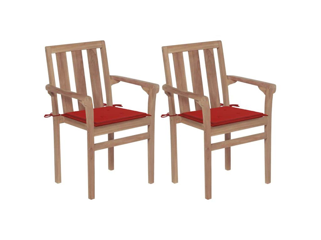 vidaXL Záhradné stoličky 2 ks s červenými podložkami tíkový masív