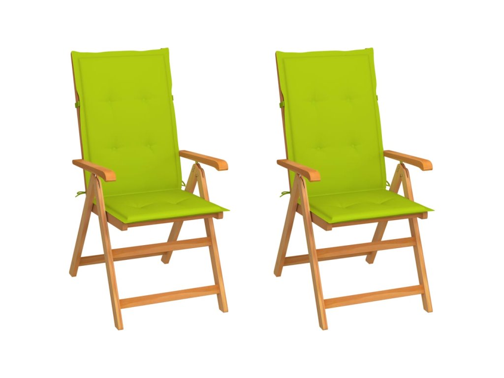 vidaXL Záhradné stoličky 2 ks s jasnozelenými podložkami tíkový masív