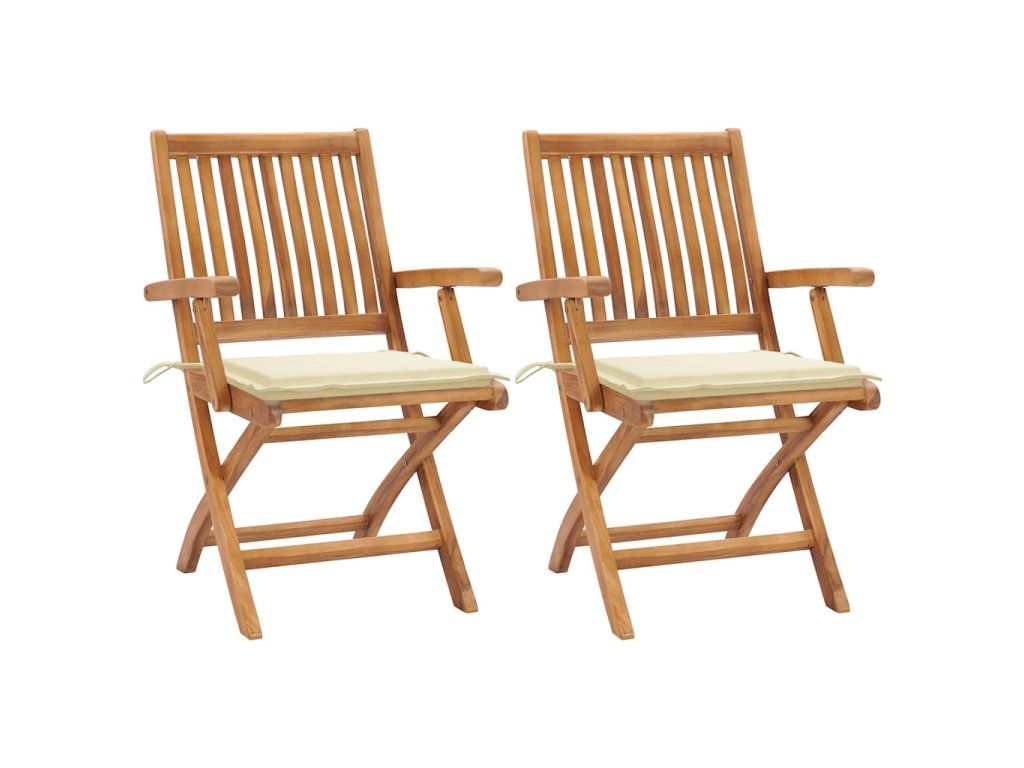 vidaXL Záhradné stoličky 2 ks s krémovými podložkami tíkový masív