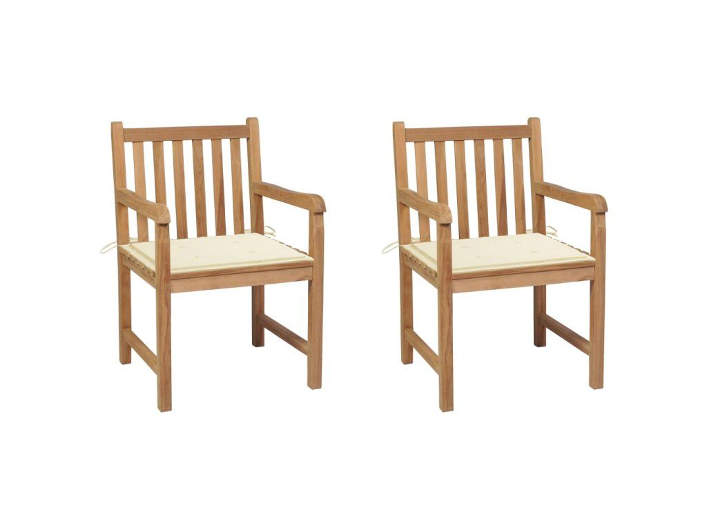 vidaXL Záhradné stoličky 2 ks s krémovými podložkami tíkový masív