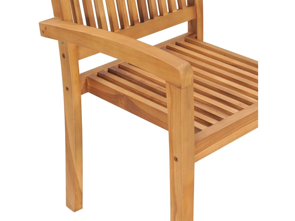 Vonkajšie stoličky majú latkové operadlá a mierne zaoblené opierky na ruky, a tak vám poskytnú maximálne pohodlie pri sedení. Stoličky sa navyše dajú poukladať na seba, keď ich nepoužívate. Podložky, ktoré sú súčasťou balenia, sú praktické a zároveň plnia aj dekoratívnu funkciu.