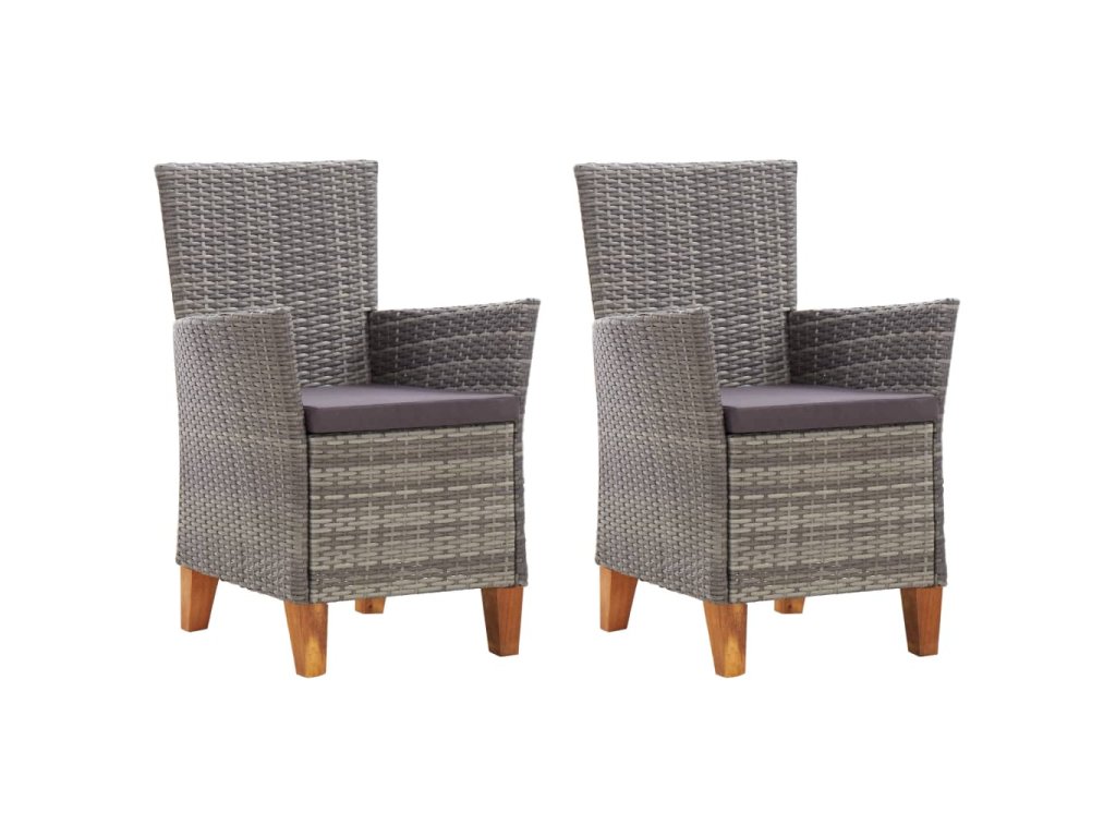 vidaXL Záhradné stoličky 2 ks s podložkami sivé polyratanové